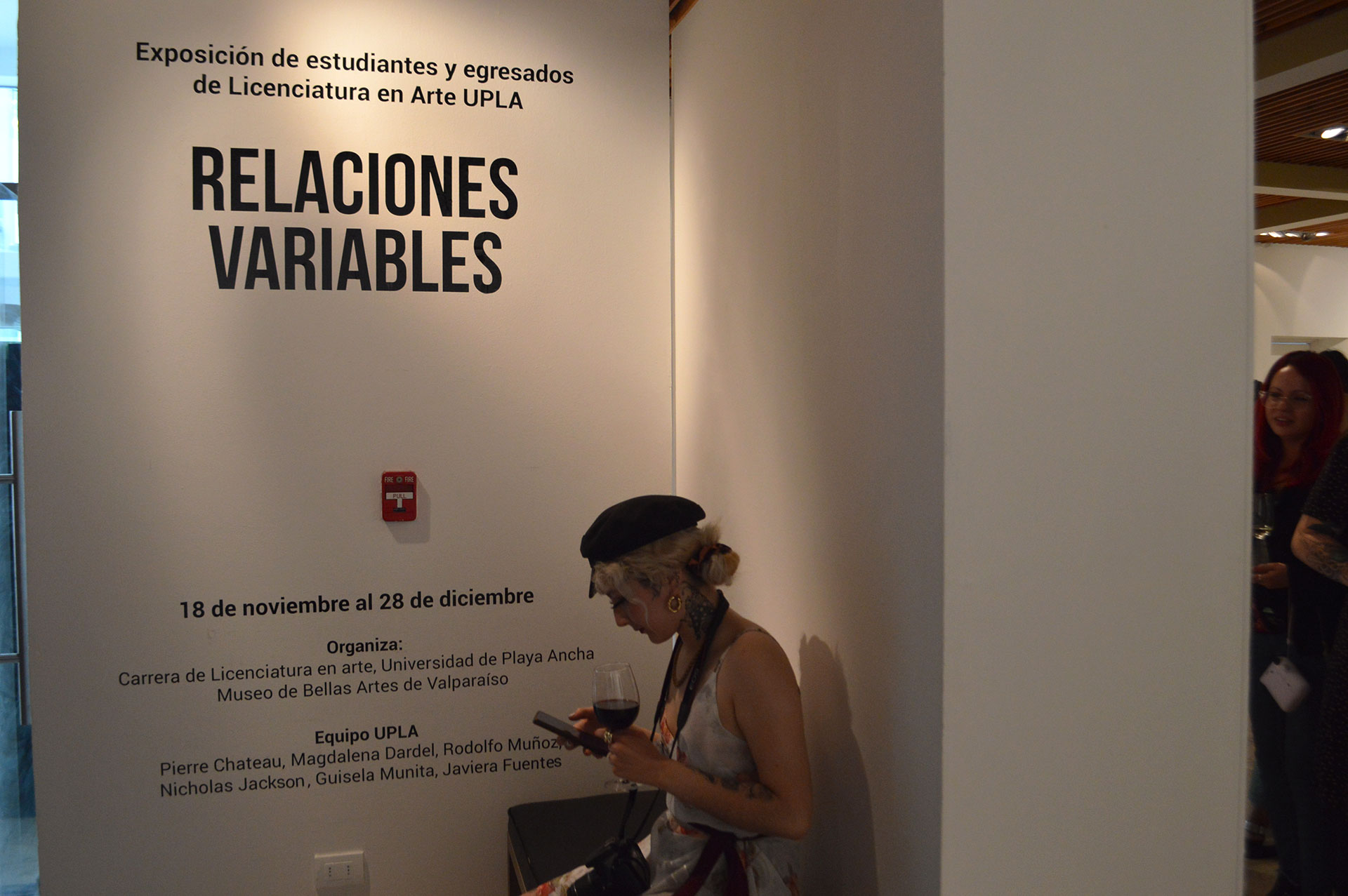 La académica UPLA, Dra. Guisela Munita Martínez como directora de la carrera de Licenciatura en Arte e impulsora de la exposición, manifestó lo siguiente en el acto inaugural: “Quienes visiten la muestra se van a encontrar con la obra de estudiantes. Esto es la práctica que ellos tienen y trabajan con distintas disciplinas, como grabado, pintura, fotografía, cerámica, serigrafía, y todo lo que se trabaja en los talleres de la Facultad. Es una exposición donde distintas generaciones conviven bajo el concepto de las relaciones variables, que plantea que el arte es muy relativo y va a depender mucho de la estructura de los planeamientos”.