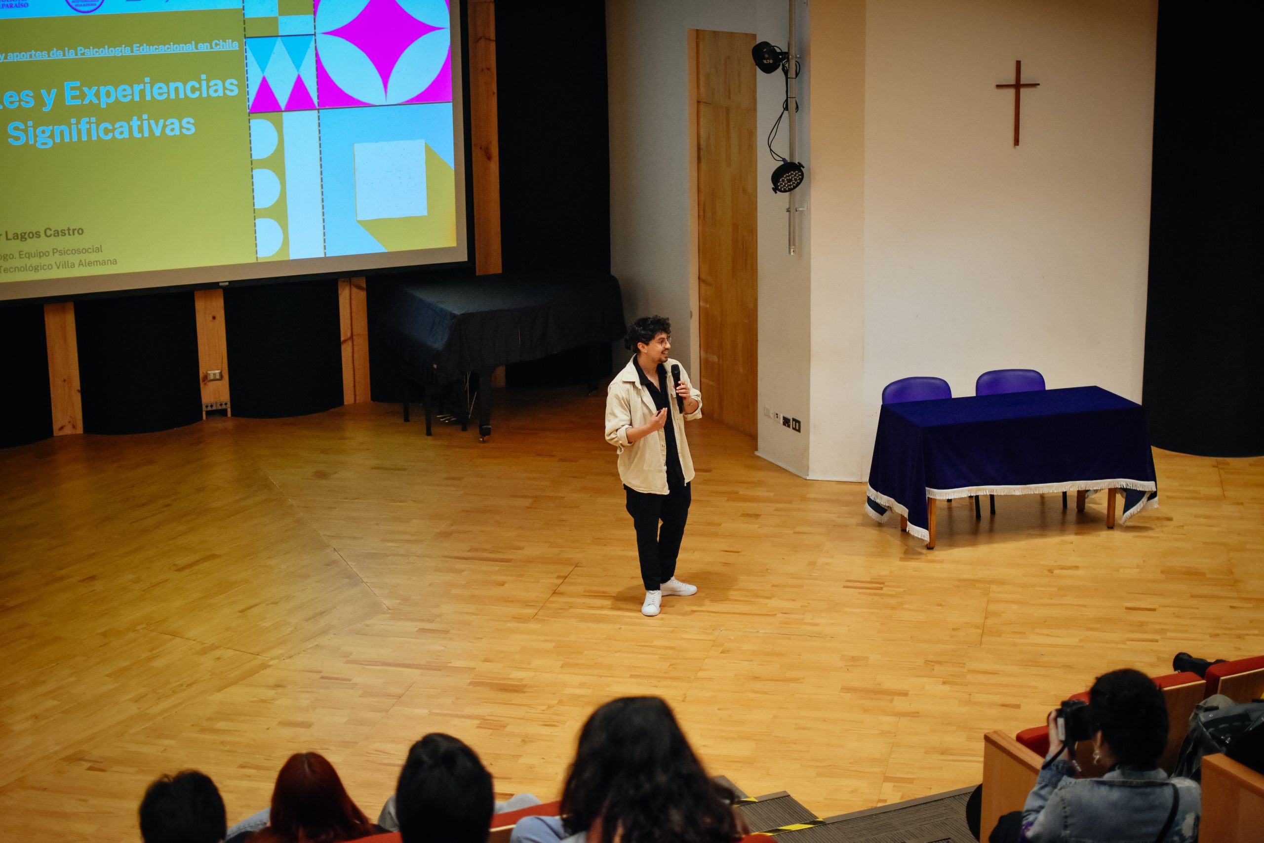 A través de la presentación titulada “Desafíos y aportes de la Psicología Educacional en Chile: Roles y experiencias significativas”, Lagos dio a conocer la labor que realiza en su establecimiento, espacio en el que brinda apoyo psicoeducativo a las y los estudiantes y sus familias, con énfasis en quienes presentan condición prioritaria o preferente en riesgo pedagógico, como también a quienes poseen dificultades sociales, afectivas y/o conductuales, con la finalidad de garantizar el desarrollo de sus trayectorias formativas, todo en concordancia con el proyecto educativo institucional, el plan de mejoramiento educativo y el currículum vigente.