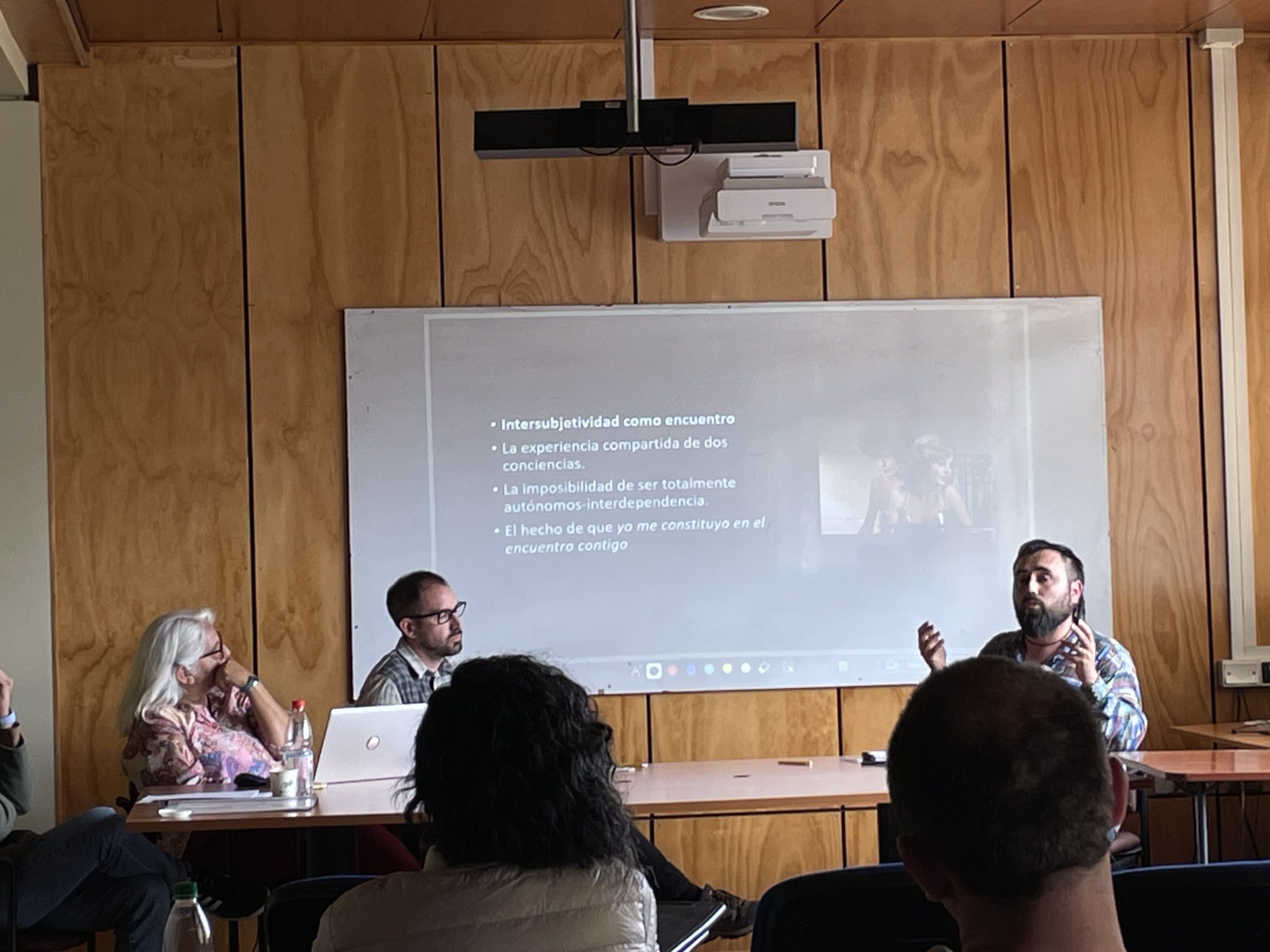 Marcelo Sandoval Ramírez abordó la relación entre intersubjetividad, amabilidad y poder en contextos de cuidado. El académico afirmó que “la amabilidad verdadera es un acto político, no decorativo” y que “la amabilidad como subversión del poder: interacciones que curan” constituye un límite ético que nunca invade ni humilla. Sandoval presentó un análisis de escenas de Las lágrimas de Petra Von Kant, destacando situaciones donde alguien que debía cuidar terminó controlando, y alguien sin poder es quien efectivamente cuida. Subrayó que la intersubjetividad, entendida como encuentro y experiencia compartida de dos conciencias, evidencia la imposibilidad de ser totalmente autónomos, mostrando que nos constituimos en el encuentro con el otro.