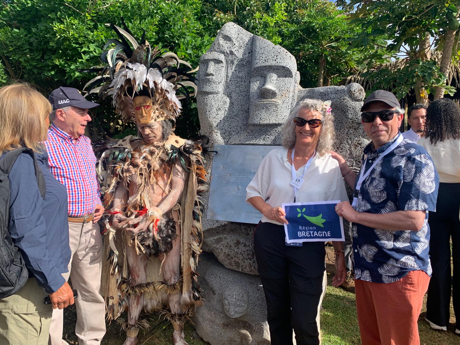 “De hecho, la relevancia intercultural de la cooperación ha tenido un hito reciente, la construcción de un moai en la Vallée des Saints, esculpido por artistas rapanui y bretones, que se suma al trabajo de pintura mural que han realizado algunos estudiantes de la Facultad de Arte en colegios de Bretaña. Ahora tenemos también el desafío de proyectar iniciativas que vinculen la investigación y la vinculación con el medio en temas de interculturalidad, patrimonio y transición ecológica en sistemas costeros de gran fragilidad. Sólo como ejemplo, la playa de Anakena y su ecosistema están sufriendo el impacto de los microplásticos que se desplazan por las corrientes marítimas desde la denominada Gran Mancha de Basura del Pacífico”, manifestó Gascón.