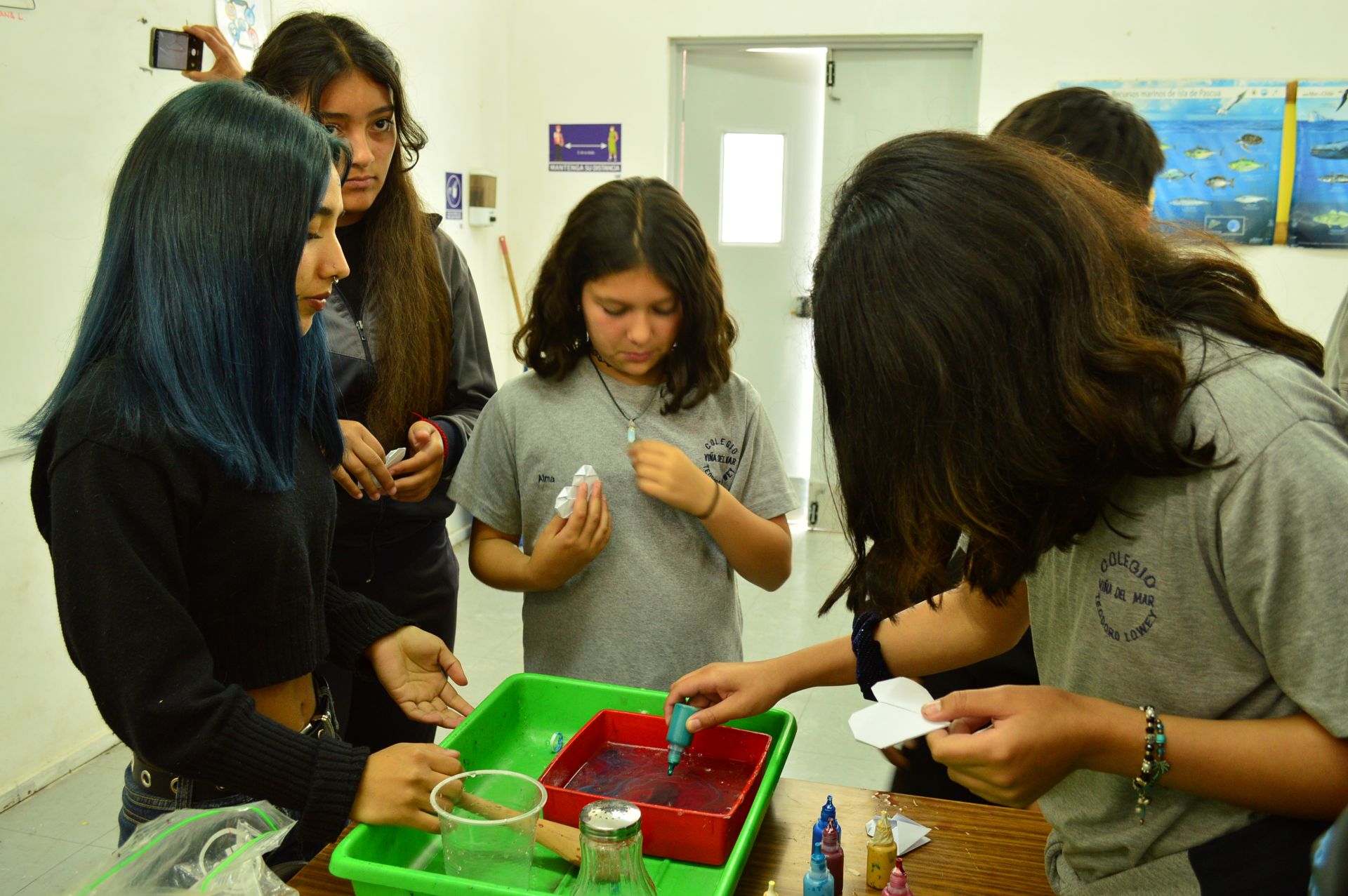 Otro hito importante dentro del elenco, es la demostración que realizan de la técnica de marmolado, que se hace en fuentes que contienen agua y un químico, donde se estampan, por así decirlo, papeles o materialidades. Aquí, los niños y niñas pueden elegir los colores que quieren ver, y luego, observar resultados que son inéditos, no planificados. Esto les sorprende debido a cómo se impregnan en la superficie.