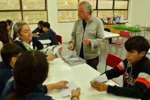 Sergio Angeloni es profesor de Castellano de la Escuela República de Colombia, y fue quien seleccionó a los participantes de la jornada en dicho establecimiento. Para él, “Ya al invitarnos a crear algo distinto, se cambia el chip de la normalidad, que es entregar a los estudiantes conocimiento teórico. Es un llamado a la acción, a crear, y eso interesó mucho a los y las participantes, a quienes el arte motiva. Ellos quieren pintar, dibujar, y están abiertos a conocer otras técnicas y ver los distintos materiales, explicarles procesos, les abre un mundo. El arte les expande no solo la mente, sino que les cambia el ánimo y la disposición, y eso es sumamente importante”.