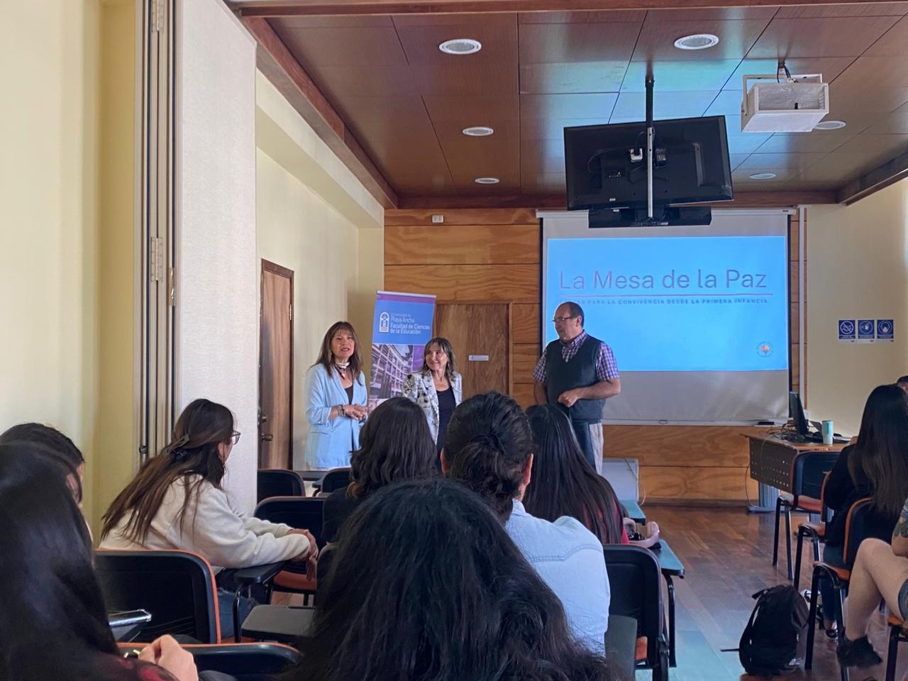La charla fue liderada por la docente Marjorie Pérez Ulloa, especialista del Colegio Alemán de Valparaíso, quien compartió estrategias críticas para la gestión emocional. La «Mesa de la Paz» se presentó no solo como una técnica, sino como un pilar fundamental para promover el diálogo y la empatía desde los primeros años de escolaridad, elementos que el perfil de egreso de la carrera busca consolidar en sus estudiantes.