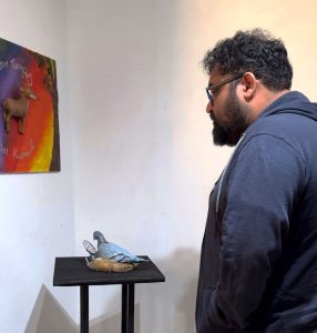 Dante Guerra, autor de la obra “Aullido de socorro”, realizada mediante impresión 3D y técnicas exploratorias, comentó que su propuesta “busca transformar el dolor en un gesto de cuidado y empatía”.