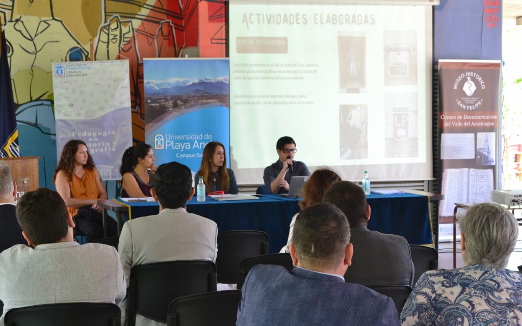 En específico, en representación del Liceo Dr. Roberto Humeres Oyadener, el profesor de Historia y Geografía, Felipe Orellana Mandujano, abordó el “Legado histórico en la educación del Valle de Aconcagua”. Luego fue el turno de la encargada del Archivo Histórico de la Fundación Buen Pastor de San Felipe, Tania Freire Rivera, cuya exposición se centró en la temática “Archivo congregacional y memoria femenina: Resguardo del patrimonio documental del Buen Pastor en San Felipe”. Le siguieron los también docentes de Historia, Francisco Jamett Montenegro y Tomás Gutiérrez, los que realizaron la presentación “Rescate de archivos del Liceo Bicentenario Corina Urbina Villanueva, Patrimonio de Aconcagua”.