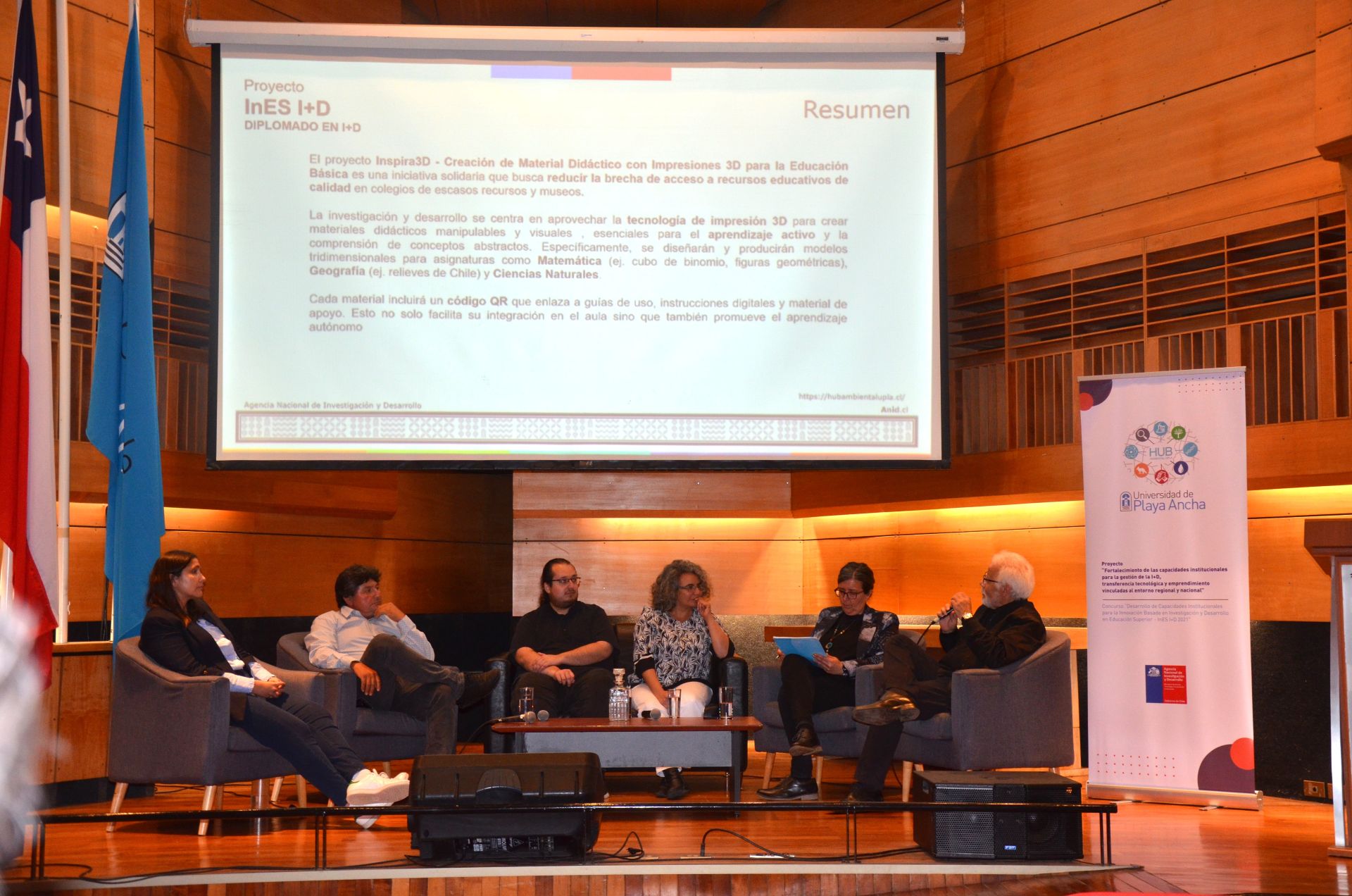 En la ocasión, la Dra. Viviana Urtuvia, coordinadora general del proyecto, expuso los avances institucionales más notables que deja la aplicación del instrumento Innovación en Educación Superior (InES), impulsado por la Agencia Nacional de Investigación y Desarrollo (ANID) y focalizado, en este caso, en la Investigación, Desarrollo, Innovación y Emprendimiento (I+D+i+e).