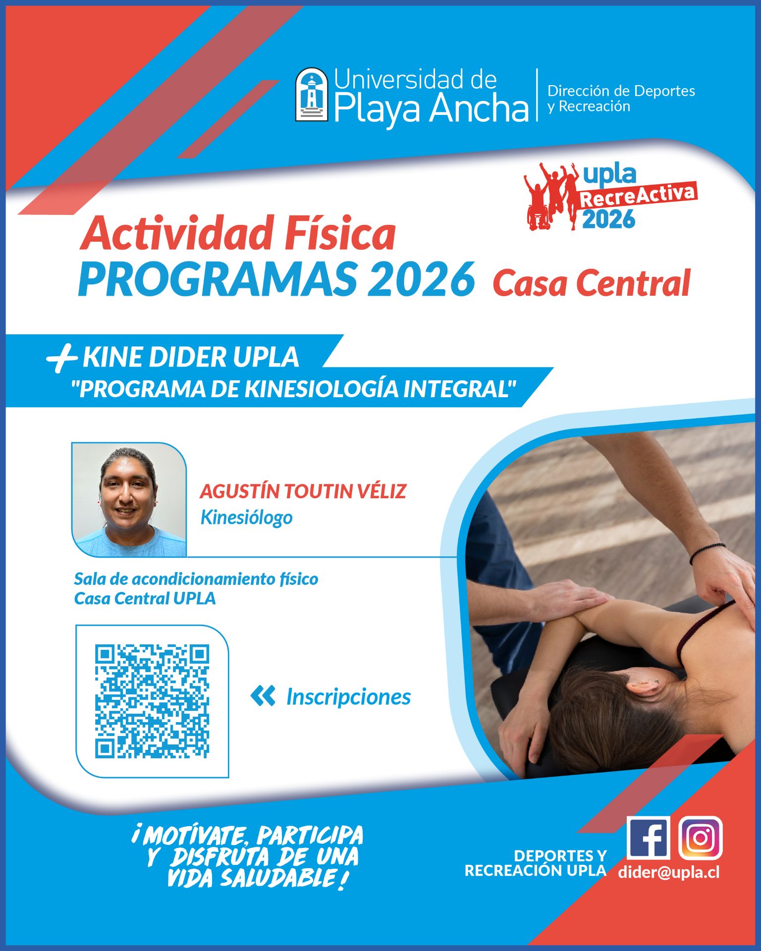 La Dirección de Deportes y Recreación (DIDER), dependiente de la Dirección General de Desarrollo Estudiantil, invita a toda la comunidad universitaria a ser parte del programa: «PREP +KINE DIDER UPLA: Promoción, Rehabilitación, Educación y Prevención».