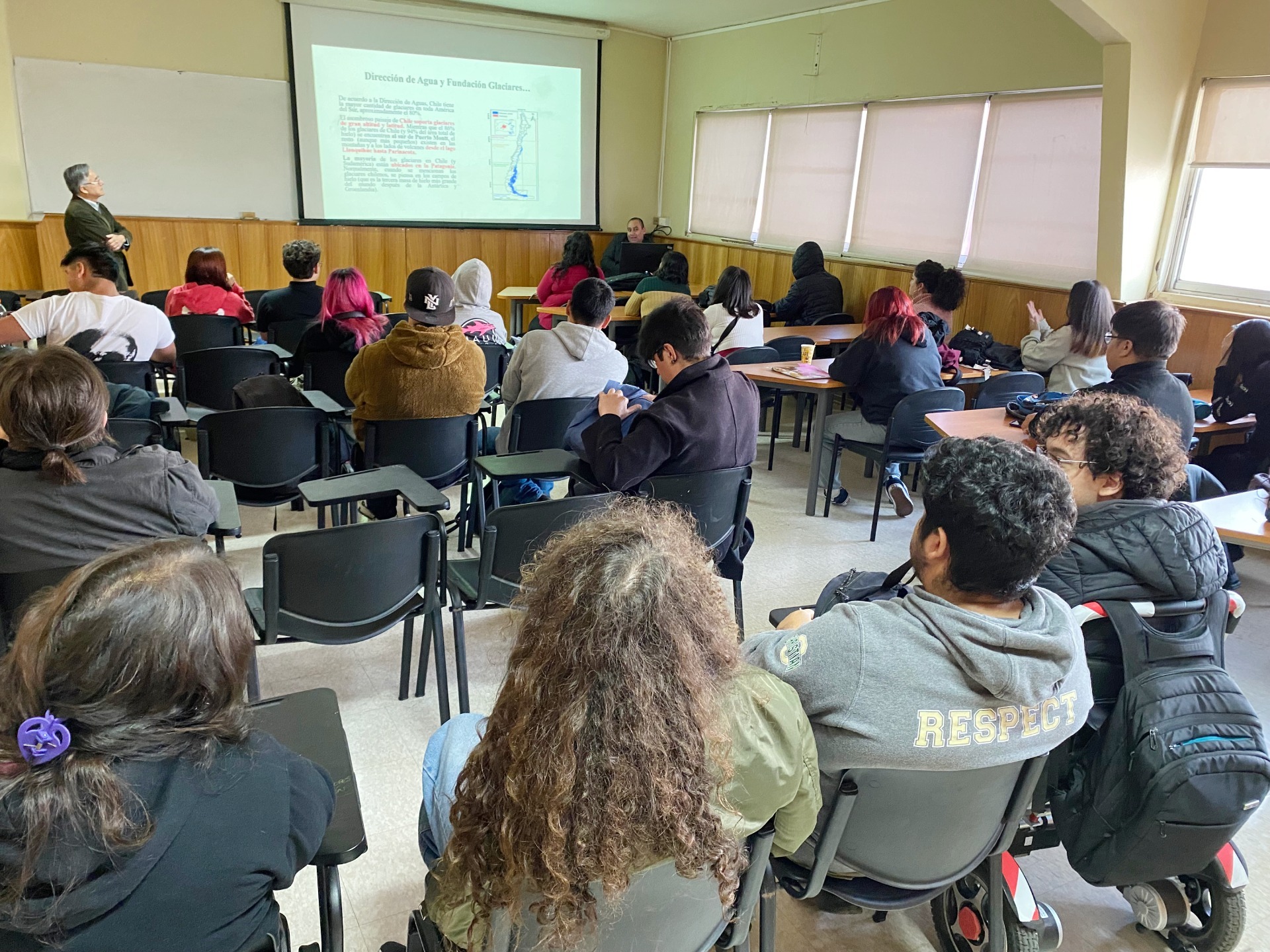Junto a estudiantes de primero y quinto año de la carrera de Pedagogía en Historia y Geografía de la Universidad de Playa Ancha, los académicos Dr. Mauricio Jara Fernández y Mg. Juan Galea Alarcón lideraron una reflexión en torno a la presencia de los glaciares en los textos escolares de enseñanza básica y media del país.