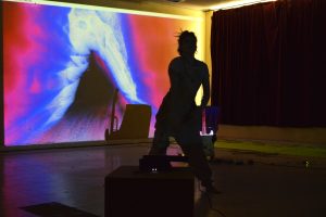Segundo: La alumna Renata Tapia, presentó una performance de movimiento utilizando el software TouchDesigner, activando una exploración del movimiento y la memoria corporal como gesto de acompañamiento a madres, familiares y querides de personas detenidas desaparecidas en Chile.