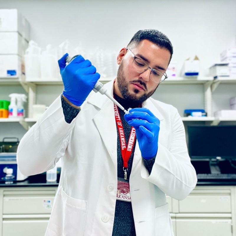 Desde agosto de 2024, cursa el Doctorado en Biología Celular y Molecular (CEMB) con énfasis en edición genética y virología molecular, en el Departamento de Ingeniería Biomédica de la University of Arkansas, Fayetteville. Allí, se desempeña como asistente de investigación en el Laboratorio de Ingeniería en Terapia Génica, bajo la dirección del Dr. Christopher E. Nelson.