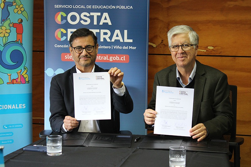 Como parte de su compromiso territorial con la educación pública de la Región de Valparaíso, la Universidad de Playa Ancha (UPLA) suscribió un convenio de colaboración con el Servicio Local de Educación Pública (SLEP) Costa Central que permitirá acciones conjuntas en prácticas formativas, capacitaciones, investigación, innovación y vinculación con el medio.