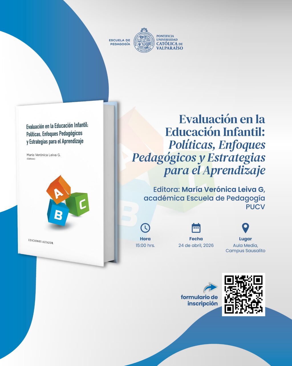 La actividad, que se realizará el viernes 24 de abril de 2026, a las 15:00 horas en el Aula Media del campus Sausalito, tiene como propósito presentar la publicación que aborda uno de los ejes fundamentales del quehacer pedagógico: la evaluación en la educación parvularia, desde una perspectiva integral, que articula políticas públicas, enfoques pedagógicos y estrategias para el aprendizaje.