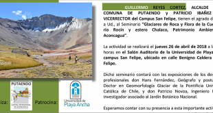 Más información26 de abril: Seminario «Glaciares de Roca y Flora de la Cuenca del río Rocín y estero Chalaco, Patrimonio Ambiental de Aconcagua»