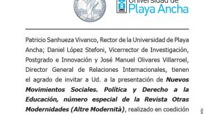 Más información12 de agosto: Presentación de número especial de la Revista Otras Modernidades