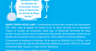 Más información28 de marzo: Seminario «Hacia un modelo de Innovación Social para el desarrollo territorial de Playa Ancha»