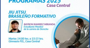 El programa estará liderado por el estudiante de Derecho, Bayron Ramírez Miranda, quien iniciará la práctica en el Gimnasio FEL de Casa Central a contar del martes 8 de abril, con un horario de 14:00 a 15:15 horas.