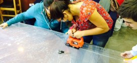 Estudiantes trabajan a toda máquina en la confección de artefactos matemáticos para presentarlos este 22 de octubre.