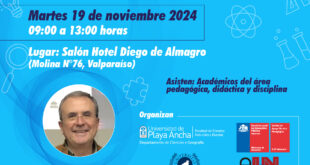 La actividad, que se realizará el martes 19 de noviembre, de 9 a 13 horas, en el Hotel Diego de Almagro, es organizada por el Departamento de Ciencias y Geografía de la Facultad de Ciencias Naturales y Exactas y por la Dirección General de Vinculación con el Medio, en el marco de la nueva Política Institucional de dicha área.