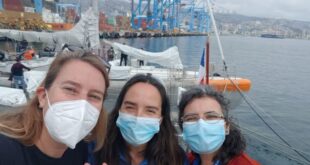 En su paso por el puerto porteño las académicas apoyaron en labores logísticas a los investigadores de la embarcación, quienes además realizarán de manera remota, actividades de difusión científica y cultural con colegios nacionales y extranjeros, y público en general.