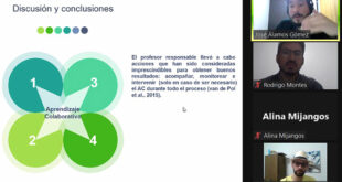 Rodrigo Montes Anguita (UPLA) junto a José Álamos (UCSH) presentaron la ponencia denominada “Aprendizaje colaborativo y creatividad en el aula de música: Una experiencia didáctica a partir de la percusión rítmica con instrumentos no convencionales”.