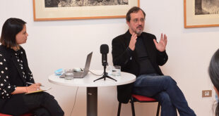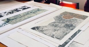 El también académico de la Facultad de Arte UPLA dialogó sobre los aspectos temáticos y técnicos de los grabados “Barroco Americano” y “Águila Sideral”, además de sus orígenes como artista y grabador.