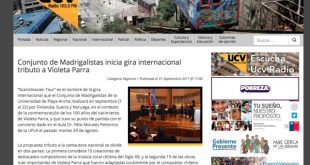 Más informaciónConjunto de Madrigalistas inicia gira internacional tributo a Violeta Parra