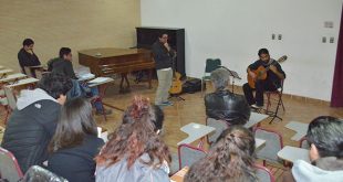 El artista y académico de la Universidad Federal de Santa María (Brasil) realizó una clase expositiva basada en la entrega de consejos para estudiar guitarra y en el análisis de temas interpretados por estudiantes de Música.