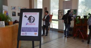 Obras de estudiantes del colegio Umbral de Curauma se exhiben en hall de la Biblioteca Central.
