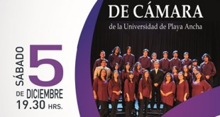 Con concierto gratuito del Coro de Cámara de la Universidad de Playa Ancha en Teatro Municipal de Viña del Mar, el sábado 5 de diciembre, a las 19.30 horas.
