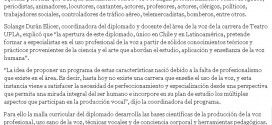 Inédito diplomado está dirigido a todo aquel individuo que hace uso profesional de su voz , y las inscripciones estarán abiertas todo marzo.