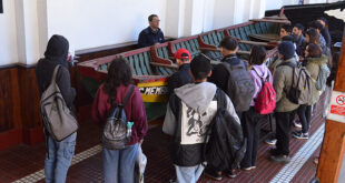 Las y los jóvenes recorrieron dependencias del museo guiados por el curador Eduardo Rivera, quien centró su exposición teórica y descriptiva en el oficio de construcción artesanal de embarcaciones conocido como carpintería de ribera.