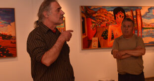 Actividad organizada por el académico de la Facultad de Arte Álvaro Miranda se desarrolló en torno a la exposición “Valparaíso Cinemascope”, que el artista porteño expone en el Palacio Baburizza de Valparaíso.
