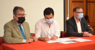 Rector Patricio Sanhueza, en su calidad de presidente de la AUR, firmó el documento junto al vicepresidente de la Convención Constitucional, Jaime Bassa en el Museo Universitario del Grabado, desde donde se conectaron vía plataforma Zoom con la presidenta Elisa Loncón, quien también puso su rúbrica en el escrito.