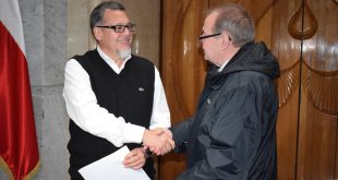 Decano de Facultad de Ciencias de la Actividad Física y del Deporte, César Oliva Aravena, y director del Departamento Disciplinario de Educación Física, Antonio Maurer Fürst.