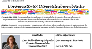 Más informaciónPremio Nacional de Educación 2021 participa en conversatorio de la Facultad de Ciencias de la Educación