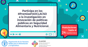 Se trata de una actividad organizada por el Grupo Especial de Trabajo de la FAO, en el cual pueden participar investigadores con artículos científicos publicados y ensayos inéditos. Plazo de recepción de los trabajos vence el 24 de septiembre.