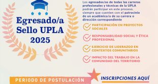 Más informaciónUnidad de Vínculos con la Comunidad Egresada abre convocatoria para el reconocimiento al Egresado/a Sello UPLA 2025