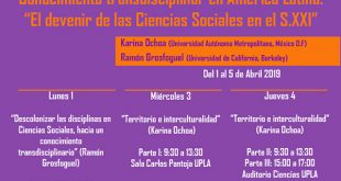 Más información1 al 5 de abril: Curso «Conocimiento transdisciplinar en América Latina: El devenir de las Ciencias Sociales en el siglo XXI»