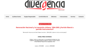 "Renovación Nacional y la transición chilena, 1984-2005. ¿Partido liberal o partido instrumental?", es el título del artículo publicado en la revista de corte semestral que se enfoca en la historia política contemporánea.