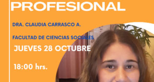 El jueves 28 de octubre, a las 18 horas, expondrá la Dra. en Ciencias de la Educación y coordinadora general de Investigación de la Facultad de Ciencias Sociales, Claudia Carrasco Aguilar, quien se referirá a las "Trayectorias docentes en su desarrollo profesional".