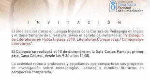 Más información10 de diciembre: IV Coloquio de Literaturas en Habla Inglesa 2018