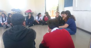Ximena Guerrero y Tamara Córdoba, de primer año de Pedagogía en Castellano, compartieron su experiencia como universitarias con los alumnos de tercero y cuarto año medio del Liceo Juan Rusque Portal de Nogales.