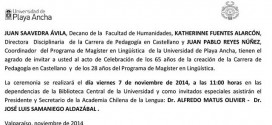 Más información7 noviembre: Celebración de los 65 años de la carrera de Pedagogía en Castellano