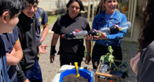 Jóvenes de primer año medio trabajaron junto a estudiantes de Ingeniería Civil Ambiental en la creación de un huerto vertical y en la caracterización física de suelo en el Laboratorio de Medio Ambiente.