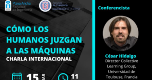 El Dr. César Hidalgo dictará la charla ¿Cómo los humanos juzgan a las máquinas?, el miércoles 15 de marzo a las 11 horas, bajo la organización del Laboratorio de Data Science de la Facultad de Ingeniería UPLA.
