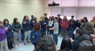 La también poeta popular, Cecilia Astorga, llegó a cerrar el taller del “Lo humano y lo divino” al tercero medio del establecimiento educacional, mientras que el cuarto medio concluyó el ciclo “Con el arte defiendo mis derechos”.