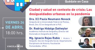 Más información24 de abril: Charla Virtual «Ciudad y salud en contextos de crisis: Las desigualdades urbanas en la pandemia»
