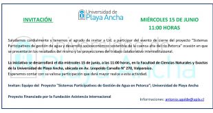 A las 11:00 horas, en el auditorio del edificio de la Facultad de Ciencias e Ingeniería, se realizará la ceremonia de clausura del proyecto "Sistemas participativos de gestión de agua y desarrollo socio-económico de la cuenca alta del río Petorca".