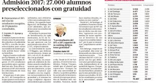 Más informaciónAdmisión 2017: 27 mil alumnos preseleccionados con gratuidad