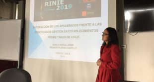 Karla Muñoz Jeria, estudiante del Magíster en Administración Educacional, presentó su investigación sobre satisfacción de apoderados ante las prácticas de gestión en establecimientos educacionales premilitares.